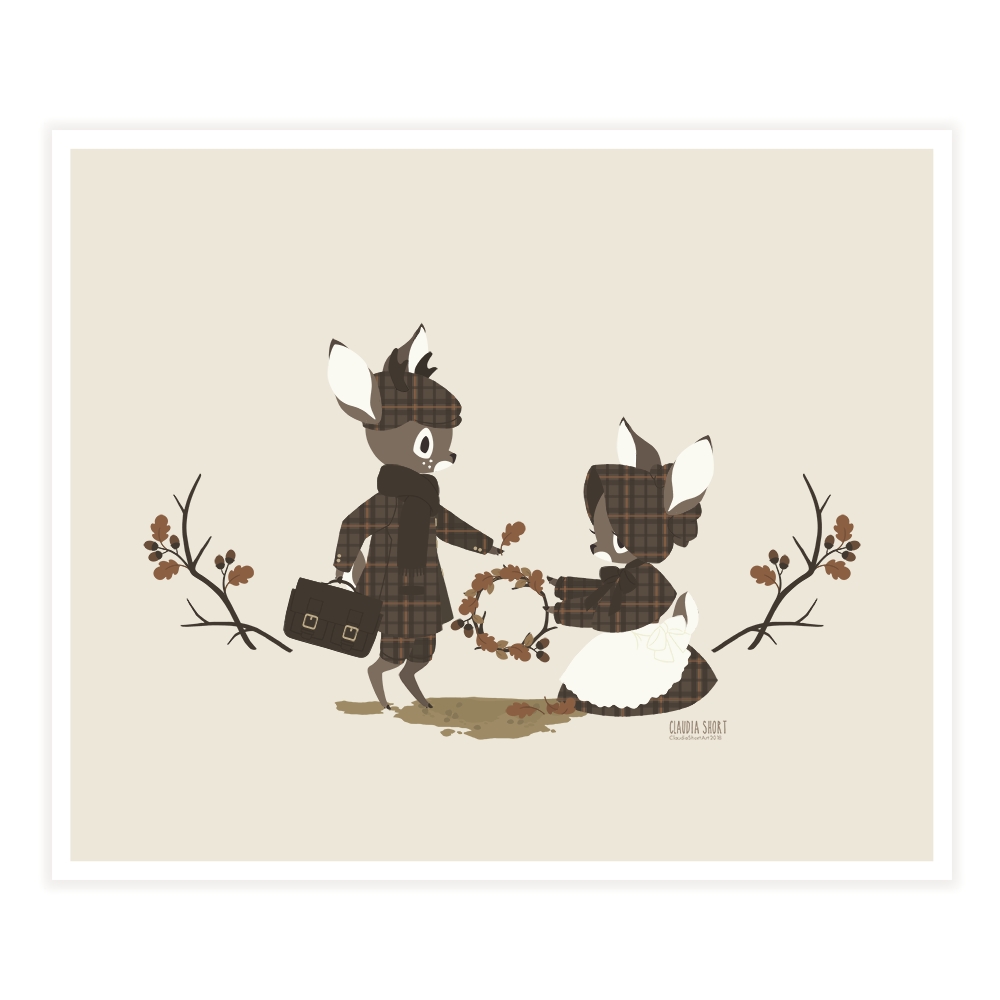 My Deer Friend is a series of illustrations featuring two young deer; set in a woodland Victorian world the illustrations detail their lives and friendship.
